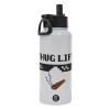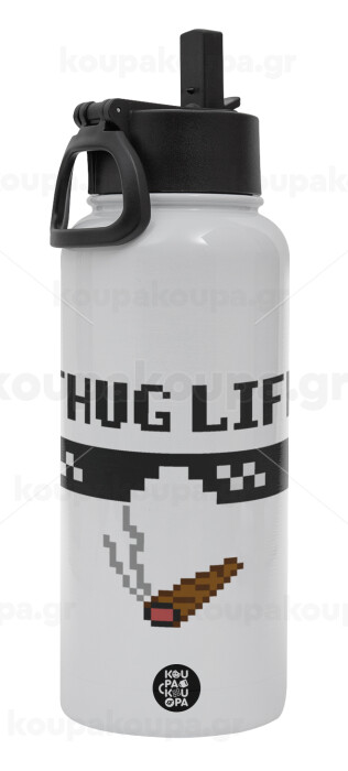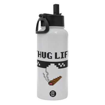 thug life, Μεταλλικό παγούρι θερμός Λευκό με καλαμάκι και χερούλι (Stainless steel), διπλού τοιχώματος, 950ml