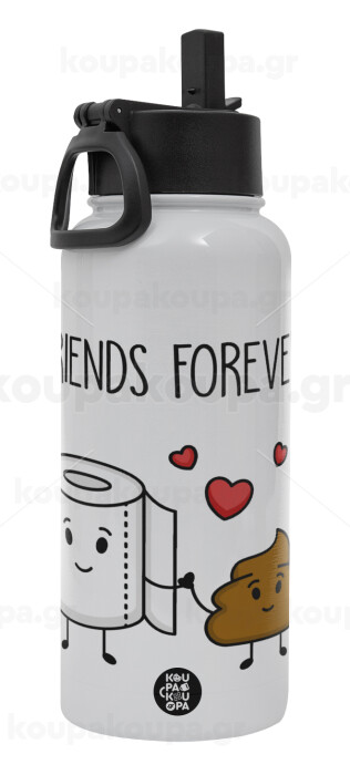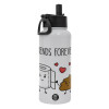 Friends forever, Μεταλλικό παγούρι θερμός Λευκό με καλαμάκι και χερούλι (Stainless steel), διπλού τοιχώματος, 950ml