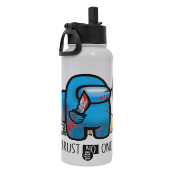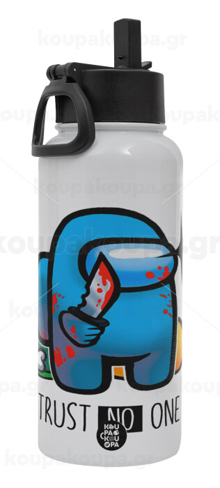 Among Trust no one, Μεταλλικό παγούρι θερμός Λευκό με καλαμάκι και χερούλι (Stainless steel), διπλού τοιχώματος, 950ml