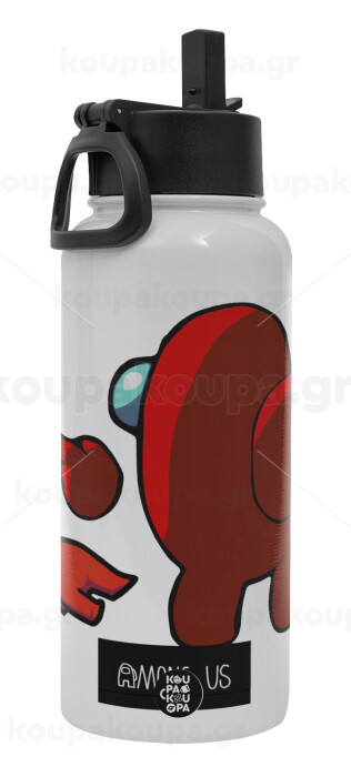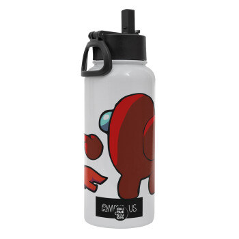 Among US i am impostor..., Μεταλλικό παγούρι θερμός Λευκό με καλαμάκι και χερούλι (Stainless steel), διπλού τοιχώματος, 950ml