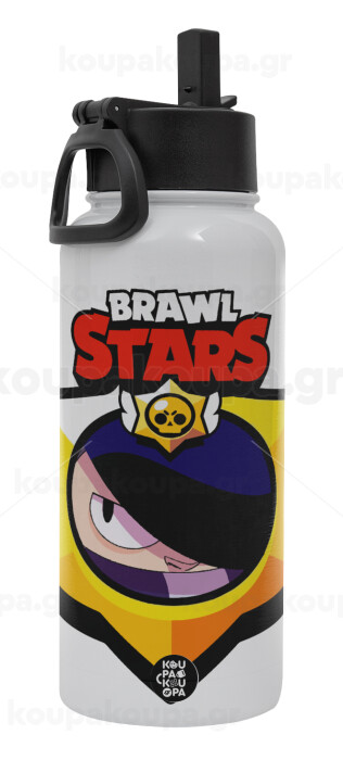 Brawl Stars Edgar, Μεταλλικό παγούρι θερμός Λευκό με καλαμάκι και χερούλι (Stainless steel), διπλού τοιχώματος, 950ml