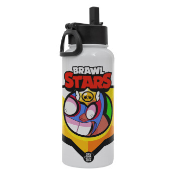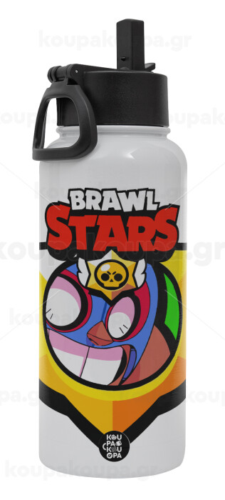 Brawl Stars El primo, Μεταλλικό παγούρι θερμός Λευκό με καλαμάκι και χερούλι (Stainless steel), διπλού τοιχώματος, 950ml
