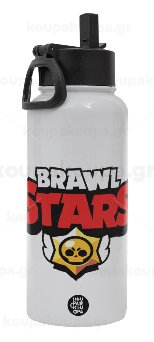 Brawl Stars, Μεταλλικό παγούρι θερμός Λευκό με καλαμάκι και χερούλι (Stainless steel), διπλού τοιχώματος, 950ml