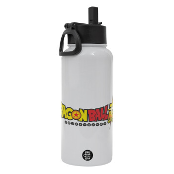 DragonBallZ, Μεταλλικό παγούρι θερμός Λευκό με καλαμάκι και χερούλι (Stainless steel), διπλού τοιχώματος, 950ml