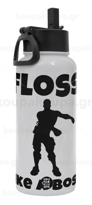 Fortnite Floss Like a Boss, Μεταλλικό παγούρι θερμός Λευκό με καλαμάκι και χερούλι (Stainless steel), διπλού τοιχώματος, 950ml