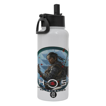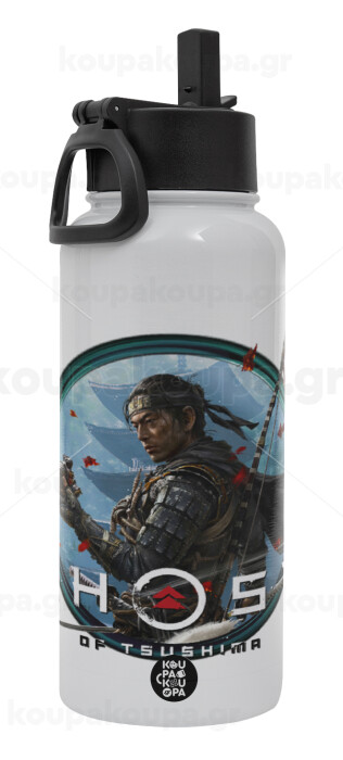 Ghost of Tsushima, Μεταλλικό παγούρι θερμός Λευκό με καλαμάκι και χερούλι (Stainless steel), διπλού τοιχώματος, 950ml