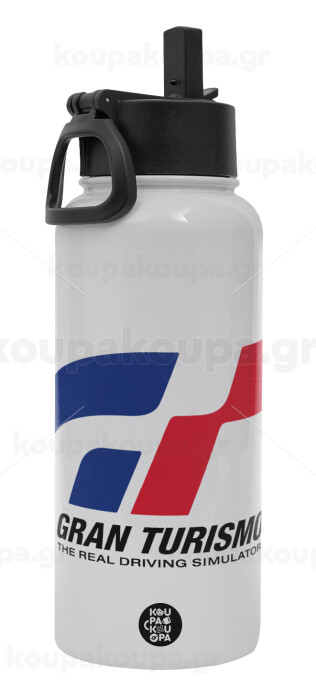 gran turismo, Μεταλλικό παγούρι θερμός Λευκό με καλαμάκι και χερούλι (Stainless steel), διπλού τοιχώματος, 950ml
