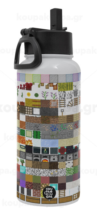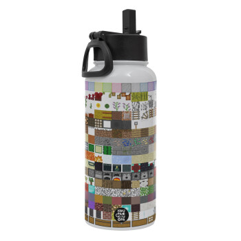 Minecraft blocks, Μεταλλικό παγούρι θερμός Λευκό με καλαμάκι και χερούλι (Stainless steel), διπλού τοιχώματος, 950ml