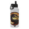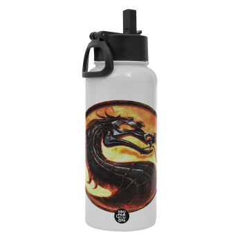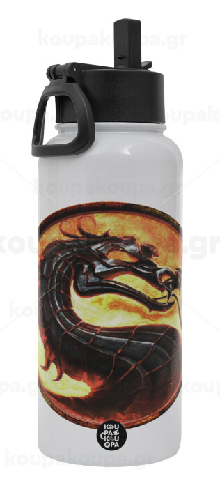 Mortal Kombat, Μεταλλικό παγούρι θερμός Λευκό με καλαμάκι και χερούλι (Stainless steel), διπλού τοιχώματος, 950ml