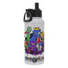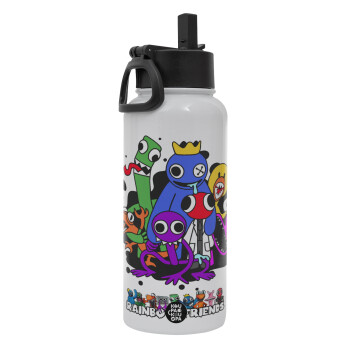 Rainbow friends, Μεταλλικό παγούρι θερμός Λευκό με καλαμάκι και χερούλι (Stainless steel), διπλού τοιχώματος, 950ml