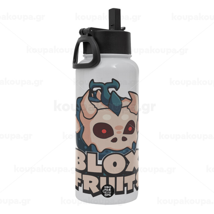 Roblox Blox Fruits, Μεταλλικό παγούρι θερμός Λευκό με καλαμάκι και χερούλι (Stainless steel), διπλού τοιχώματος, 950ml