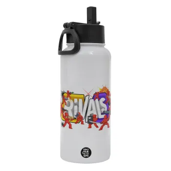 Roblox Rivals, Μεταλλικό παγούρι θερμός Λευκό με καλαμάκι και χερούλι (Stainless steel), διπλού τοιχώματος, 950ml