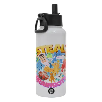 Roblox Steal a Brainrot, Μεταλλικό παγούρι θερμός Λευκό με καλαμάκι και χερούλι (Stainless steel), διπλού τοιχώματος, 950ml