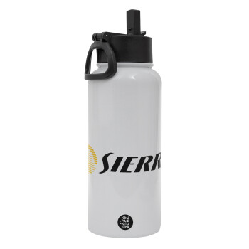 SIERRA, Μεταλλικό παγούρι θερμός Λευκό με καλαμάκι και χερούλι (Stainless steel), διπλού τοιχώματος, 950ml