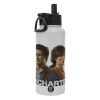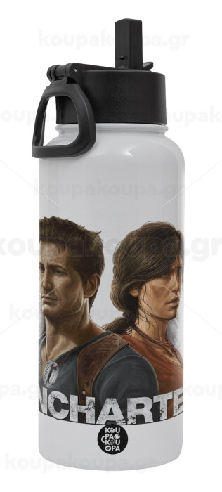 Uncharted, Μεταλλικό παγούρι θερμός Λευκό με καλαμάκι και χερούλι (Stainless steel), διπλού τοιχώματος, 950ml