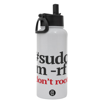 Sudo RM, Μεταλλικό παγούρι θερμός Λευκό με καλαμάκι και χερούλι (Stainless steel), διπλού τοιχώματος, 950ml