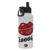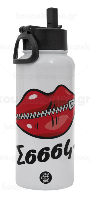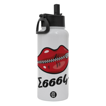Σσσσς..., Μεταλλικό παγούρι θερμός Λευκό με καλαμάκι και χερούλι (Stainless steel), διπλού τοιχώματος, 950ml