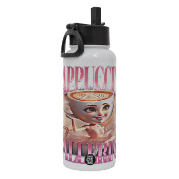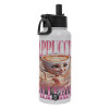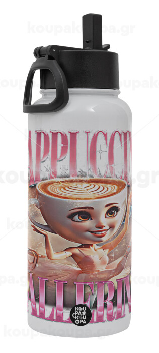 BALLERINA CAPUCHINA FUNK, Μεταλλικό παγούρι θερμός Λευκό με καλαμάκι και χερούλι (Stainless steel), διπλού τοιχώματος, 950ml