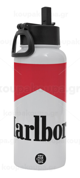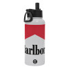 Marlboro, Μεταλλικό παγούρι θερμός Λευκό με καλαμάκι και χερούλι (Stainless steel), διπλού τοιχώματος, 950ml