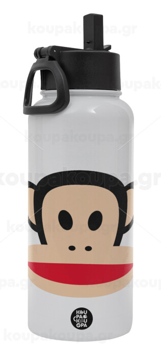 Monkey, Μεταλλικό παγούρι θερμός Λευκό με καλαμάκι και χερούλι (Stainless steel), διπλού τοιχώματος, 950ml