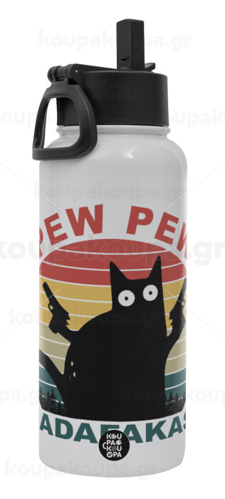 PEW PEW madafakas, Μεταλλικό παγούρι θερμός Λευκό με καλαμάκι και χερούλι (Stainless steel), διπλού τοιχώματος, 950ml