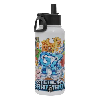 Steal a Brainrot Six Seven, Μεταλλικό παγούρι θερμός Λευκό με καλαμάκι και χερούλι (Stainless steel), διπλού τοιχώματος, 950ml
