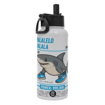 Tralalero Tralala, Μεταλλικό παγούρι θερμός Λευκό με καλαμάκι και χερούλι (Stainless steel), διπλού τοιχώματος, 950ml
