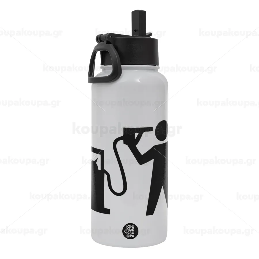Fuel crisis, Μεταλλικό παγούρι θερμός Λευκό με καλαμάκι και χερούλι (Stainless steel), διπλού τοιχώματος, 950ml