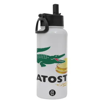 Latoste, Μεταλλικό παγούρι θερμός Λευκό με καλαμάκι και χερούλι (Stainless steel), διπλού τοιχώματος, 950ml