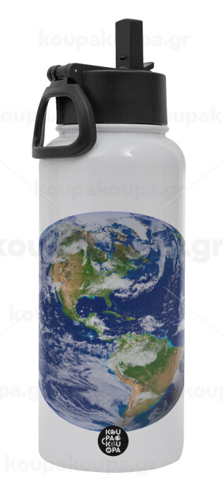 Planet Earth, Μεταλλικό παγούρι θερμός Λευκό με καλαμάκι και χερούλι (Stainless steel), διπλού τοιχώματος, 950ml