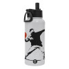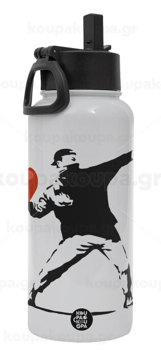 Banksy (The heart thrower), Μεταλλικό παγούρι θερμός Λευκό με καλαμάκι και χερούλι (Stainless steel), διπλού τοιχώματος, 950ml