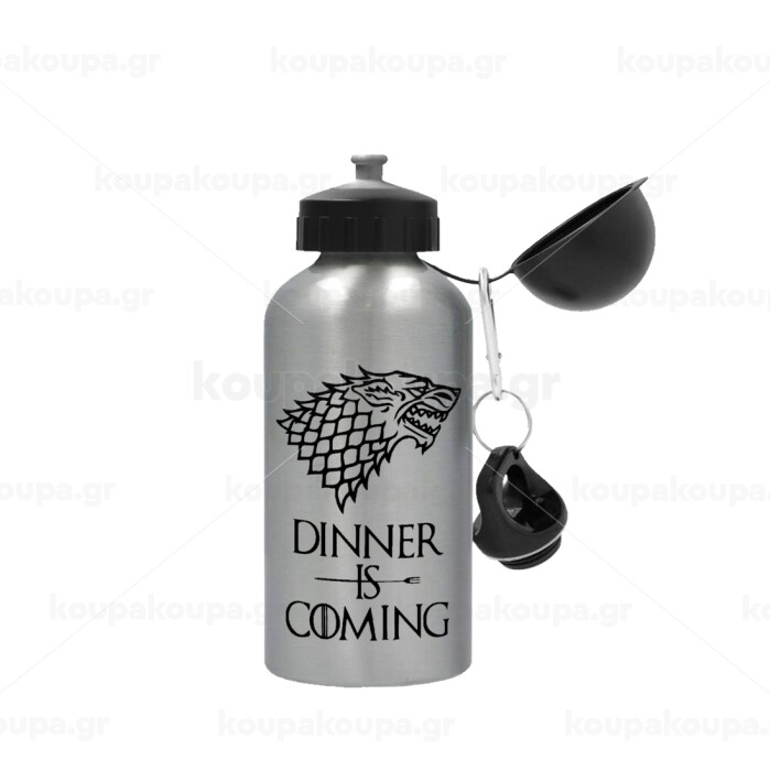 Dinner is coming (GOT), Μεταλλικό παγούρι νερού, Ασημένιο, αλουμινίου 500ml