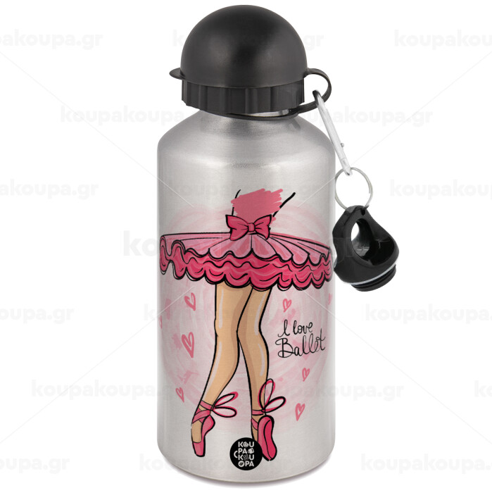I Love Ballet, Μεταλλικό παγούρι νερού, Ασημένιο, αλουμινίου 500ml