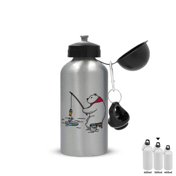 Αρκούδα ψαρεύει, Μεταλλικό παγούρι νερού, Ασημένιο, αλουμινίου 500ml