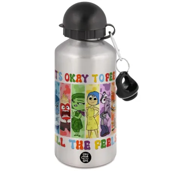 Inside Out It's Okay To Feel All The Feels , Μεταλλικό παγούρι νερού, Ασημένιο, αλουμινίου 500ml