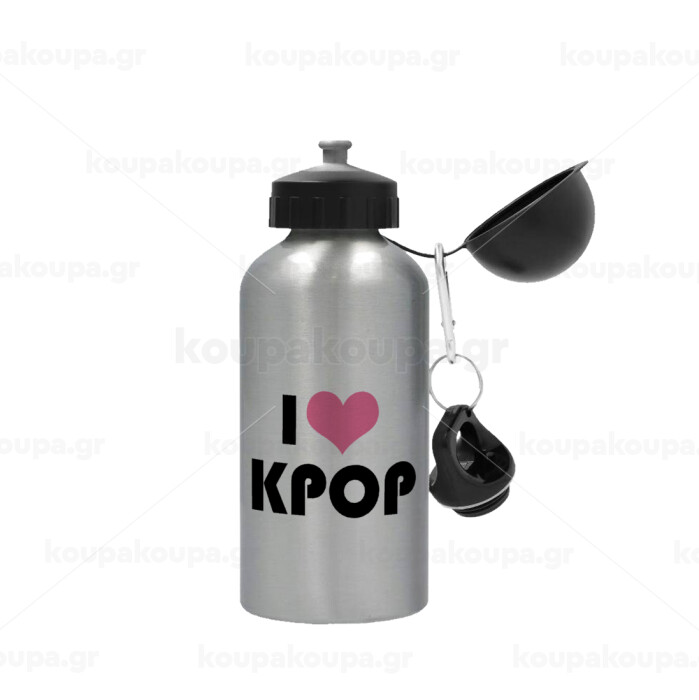 I Love KPOP, Μεταλλικό παγούρι νερού, Ασημένιο, αλουμινίου 500ml
