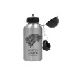 GOT House of Starks, winter coming, Μεταλλικό παγούρι νερού, Ασημένιο, αλουμινίου 500ml