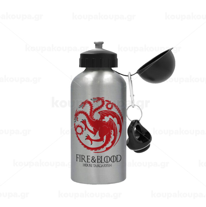 GOT House Targaryen, Fire Blood, Μεταλλικό παγούρι νερού, Ασημένιο, αλουμινίου 500ml