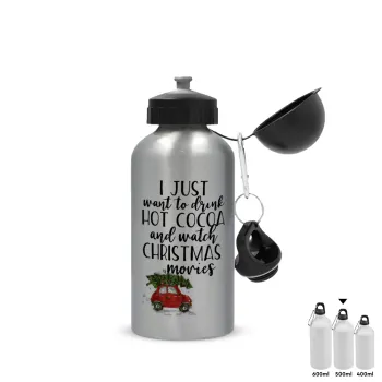 I just want to drink hot cocoa and watch christmas movies mini cooper, Μεταλλικό παγούρι νερού, Ασημένιο, αλουμινίου 500ml