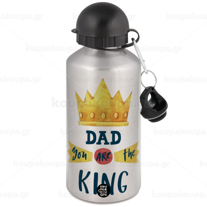 Dad you are the King, Μεταλλικό παγούρι νερού, Ασημένιο, αλουμινίου 500ml