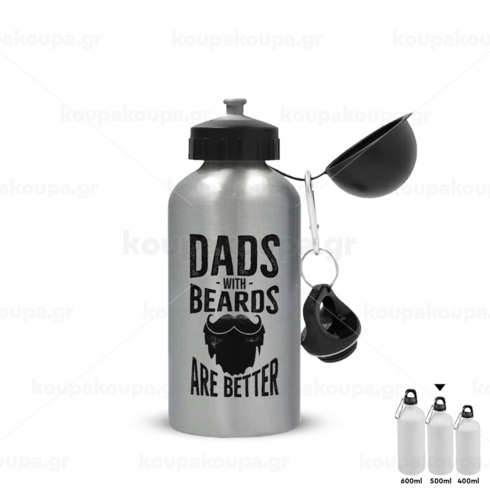 Dad's with beards are better, Μεταλλικό παγούρι νερού, Ασημένιο, αλουμινίου 500ml
