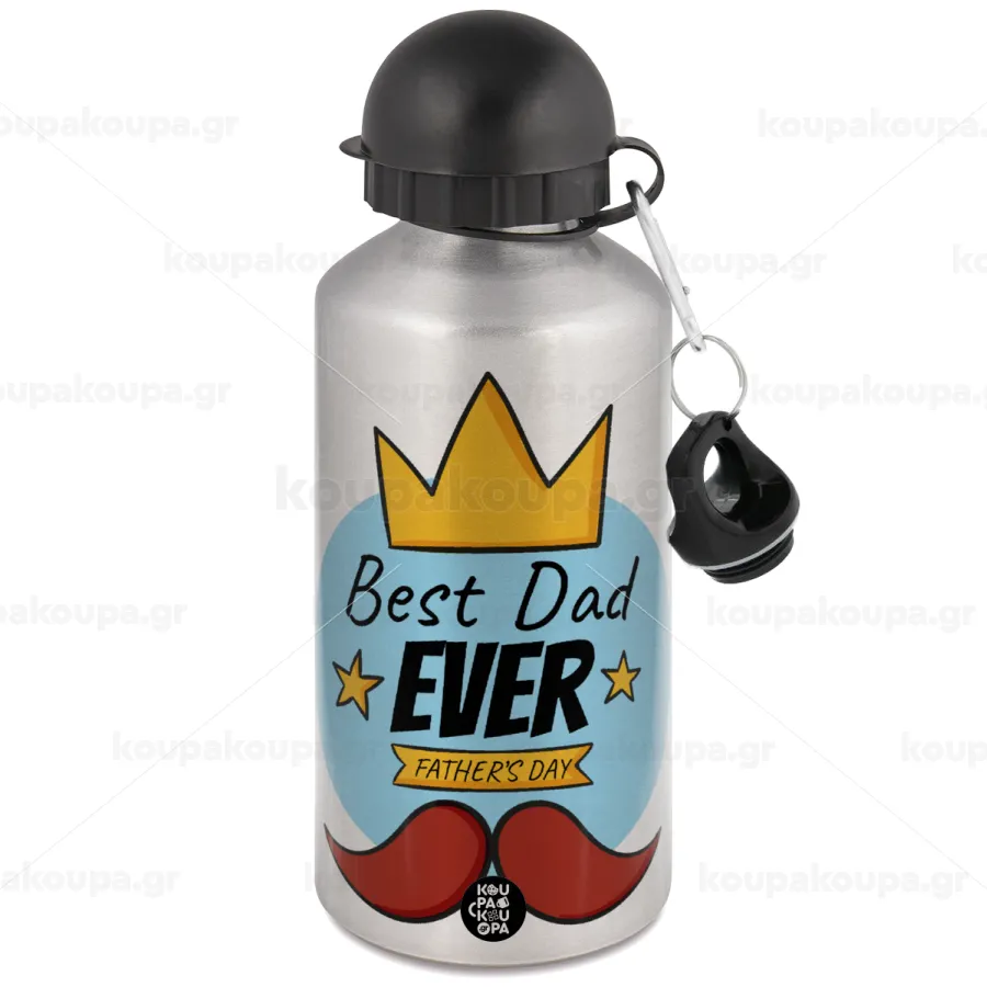 King, Best dad ever, Μεταλλικό παγούρι νερού, Ασημένιο, αλουμινίου 500ml