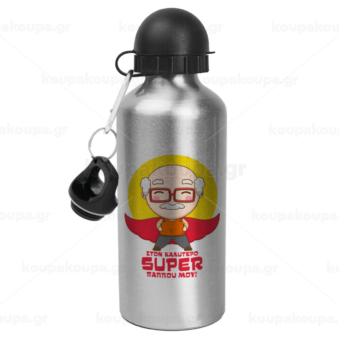 Στον καλύτερο Super παππού μου!, Μεταλλικό παγούρι νερού, Ασημένιο, αλουμινίου 500ml