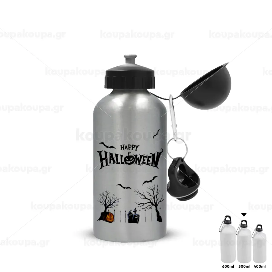 Happy Halloween cemetery, Μεταλλικό παγούρι νερού, Ασημένιο, αλουμινίου 500ml