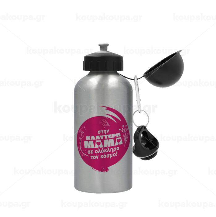 Στην καλύτερη μαμά του κόσμου!, Μεταλλικό παγούρι νερού, Ασημένιο, αλουμινίου 500ml