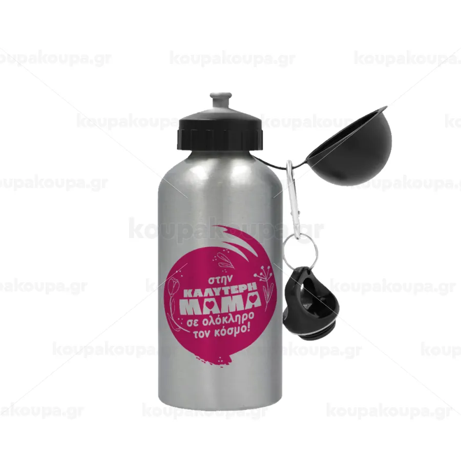 Στην καλύτερη μαμά του κόσμου!, Μεταλλικό παγούρι νερού, Ασημένιο, αλουμινίου 500ml
