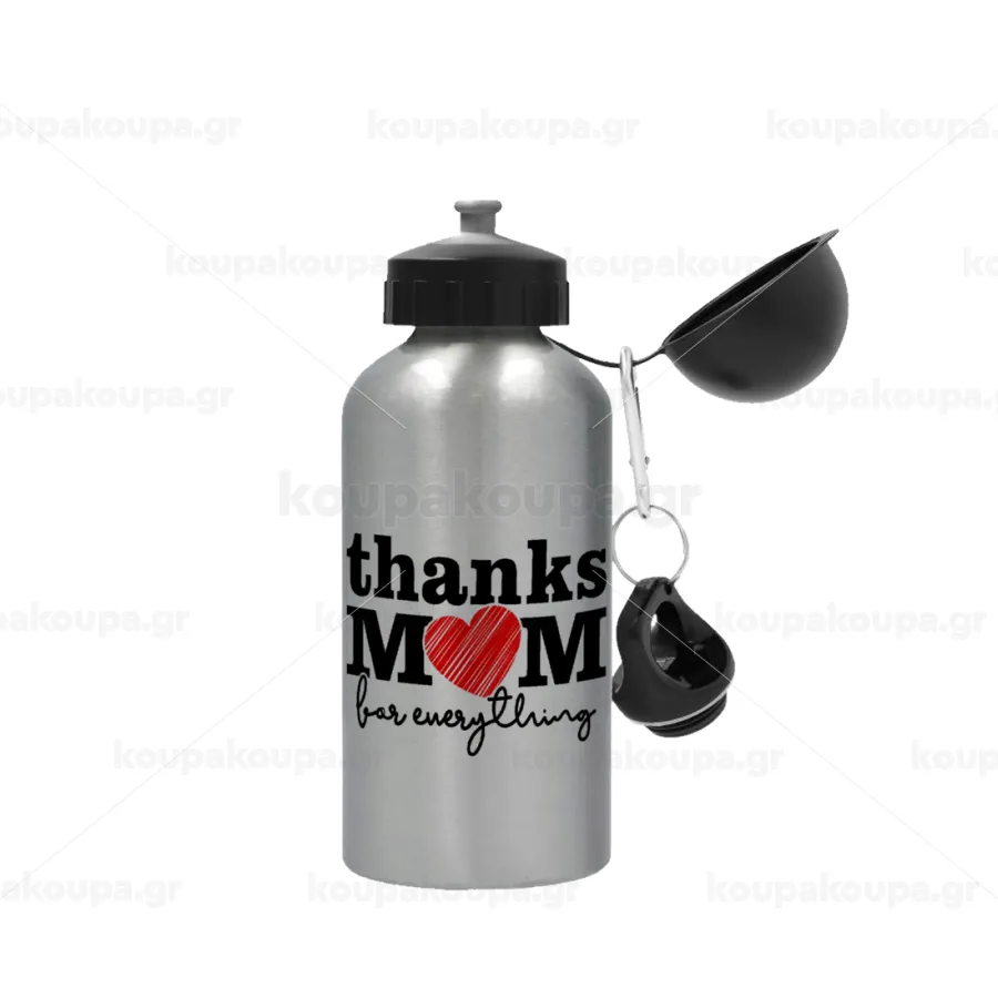 Thanks mom for everything, Μεταλλικό παγούρι νερού, Ασημένιο, αλουμινίου 500ml