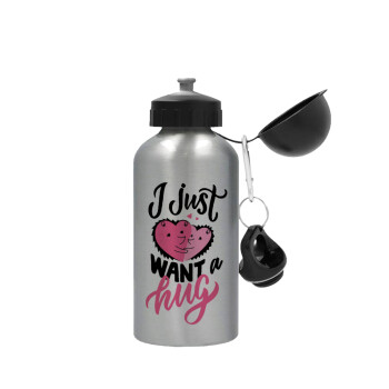 I Just want a hug!, Μεταλλικό παγούρι νερού, Ασημένιο, αλουμινίου 500ml