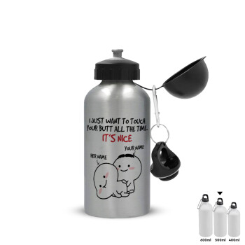 I Just Want To Touch Your Butt All The Time, Μεταλλικό παγούρι νερού, Ασημένιο, αλουμινίου 500ml