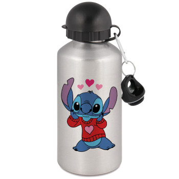 Stitch heart, Μεταλλικό παγούρι νερού, Ασημένιο, αλουμινίου 500ml